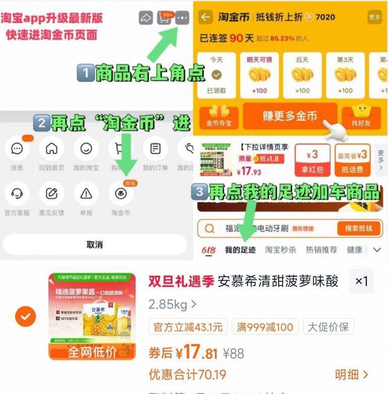 1、右上角“淘金币”加1件