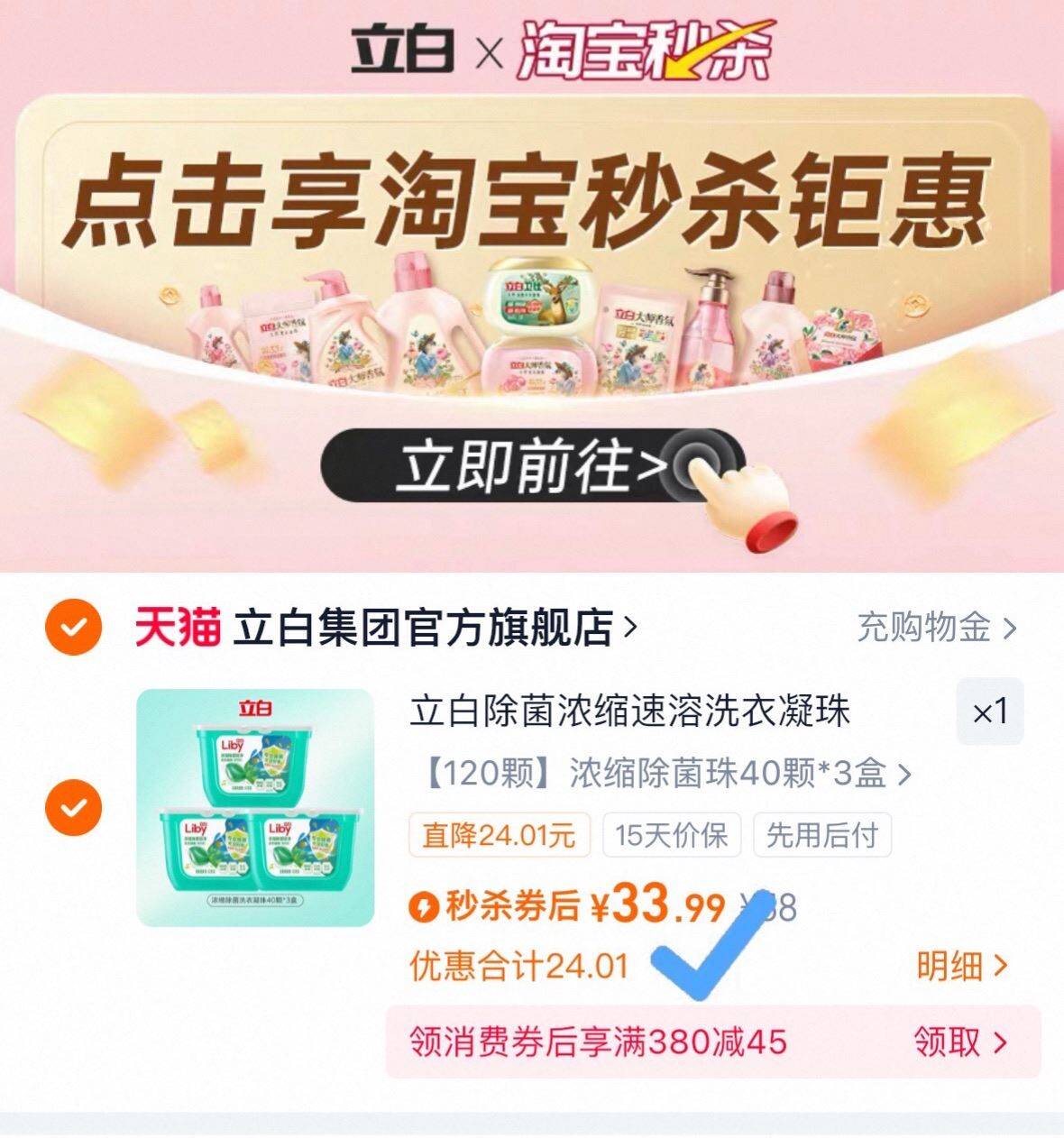 下拉淘宝秒杀33.9元 立白浓缩洗衣凝珠40颗*3盒 比洗衣液好用 手洗机洗都 好单发报员 2025年12月19日 15:33 0 举报 下拉淘宝秒杀33.9元立白浓缩洗衣凝珠40颗*3盒比洗衣液好用 手洗机洗都快囤起来,超市卖的老贵了-https://m.tb.cn/h.73wZjHZ 复制文案