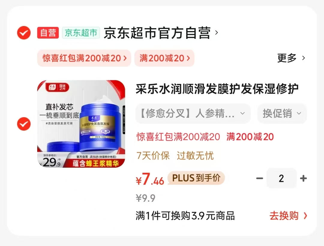 采乐 水润顺滑发膜500ml,入会后 拍2件 凑后折7.4/件
