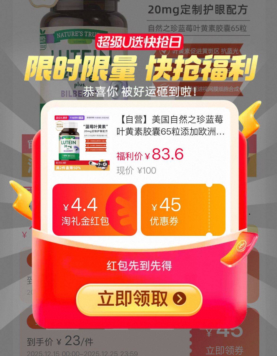 1.领券 加入购物车3件 叠楼上200-25消费券 弹礼金下拉叠金币好单发报员2025年12月20日 14:220举报 1.领券 加入购物车3件叠楼上200-25消费券弹礼金下拉叠金币自然之珍叶黄素3瓶共195粒https://m.tb.cn/h.73Fpu22复制文案
