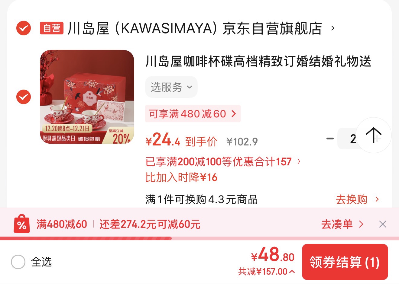 川岛屋咖啡杯碟两个装礼盒装,拍2件折每件【24.4】https://u.jd.com/ArtmKOy