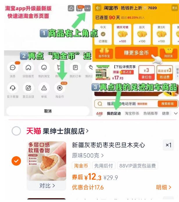 巴旦木夹心奶枣500克12元.3 - 商品右上角3个点,选淘金币 好单发报员 2025年12月21日 21:56 0 举报 巴旦木夹心奶枣500克12元.3-商品右上角3个点,选淘金币再选 我的足迹-找到商品拍下https://m.tb.cn/h.7eHuCvM 复制文案