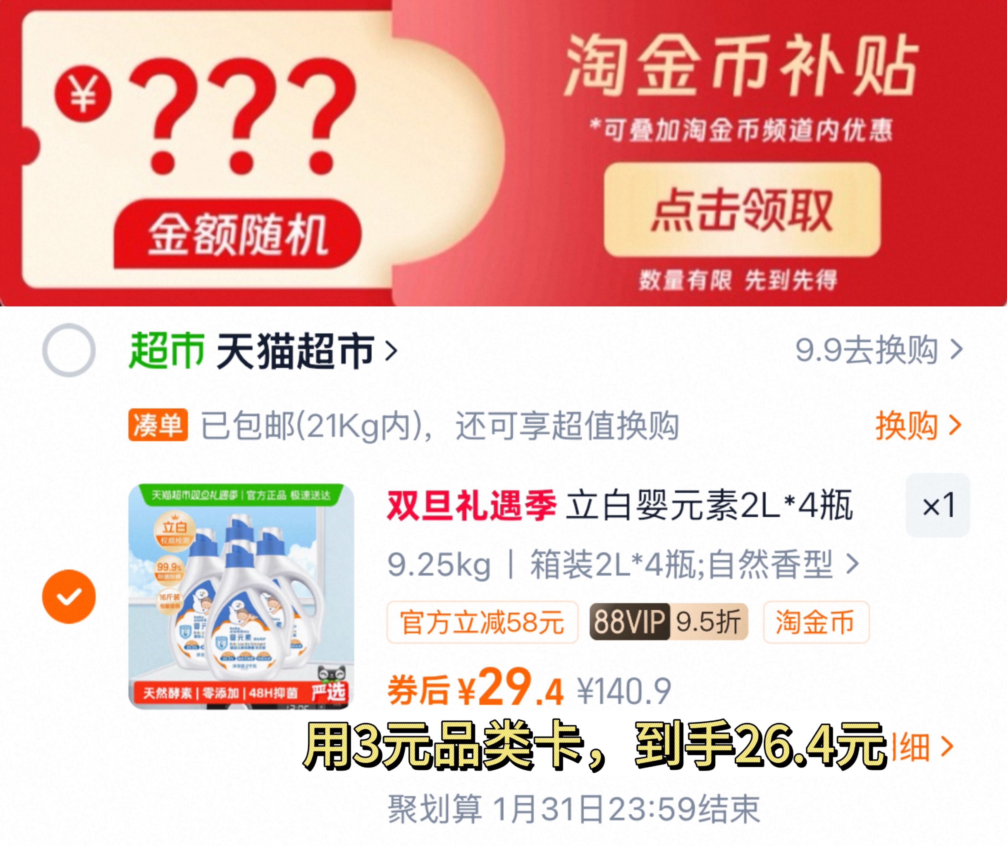 速!下拉详情拍 用3卡,vip26.4,折1.6亓/斤 立白婴亓素婴儿洗衣液4瓶共16 斤好单发报员2025年12月22日 13:030举报 速!下拉详情拍用3卡,vip26.4,折1.6亓/斤立白婴亓素婴儿洗衣液4瓶共16 斤https://m.tb.cn/h.7VBo80a复制文案