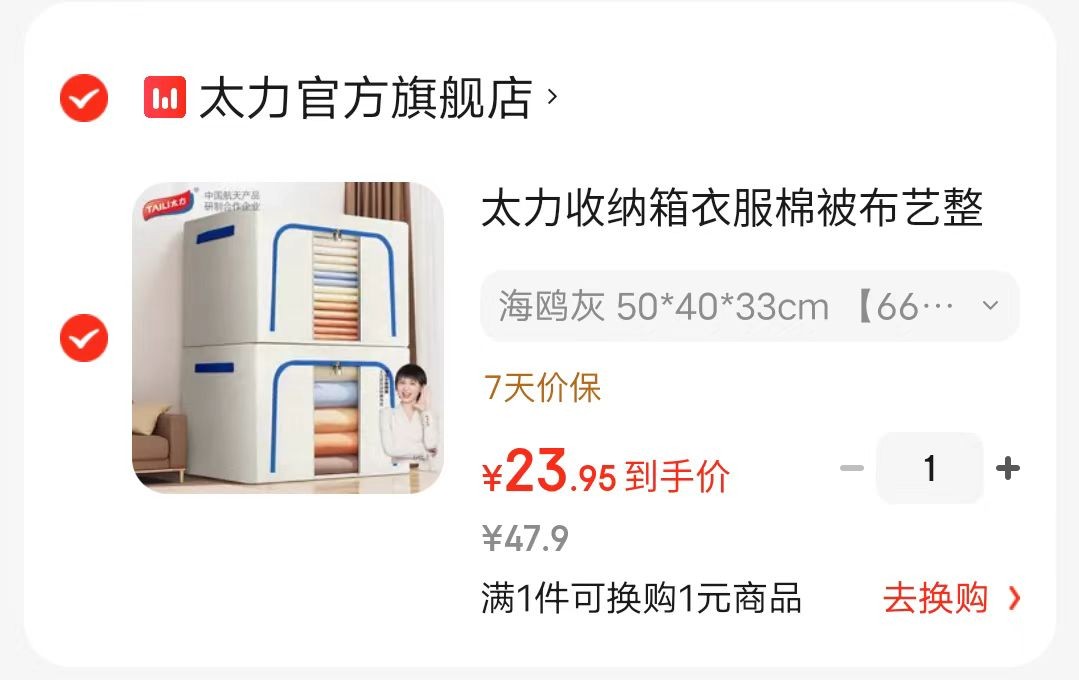 太力 收纳箱衣服棉被布艺整理箱 66L【23.9】