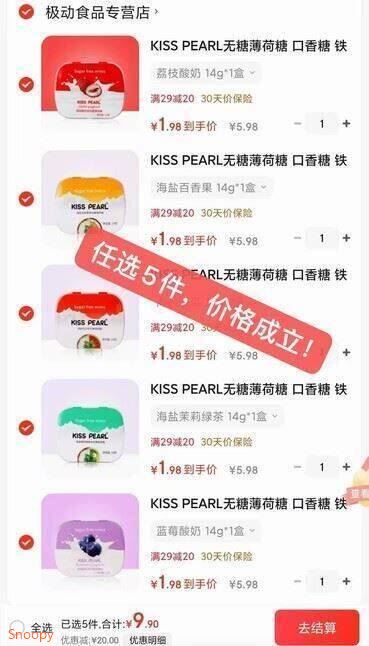1.9元/盒!任选5盒 9.9元 ! KISS PEARL 无糖口香糖 14g/盒 水果口味 小盒装方便携带~好单发报员2025年12月22日 17:570举报 1.9元/盒!任选5盒 9.9元 !KISS PEARL 无糖口香糖 14g/盒https://u.jd.com/A6wlZy9 水果口味 小盒装方便携带~复制文案
