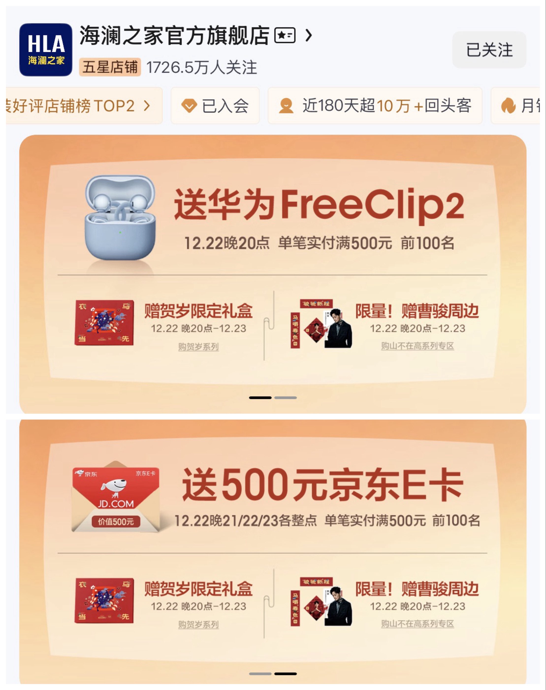 实付500送华为FreeClip2耳机