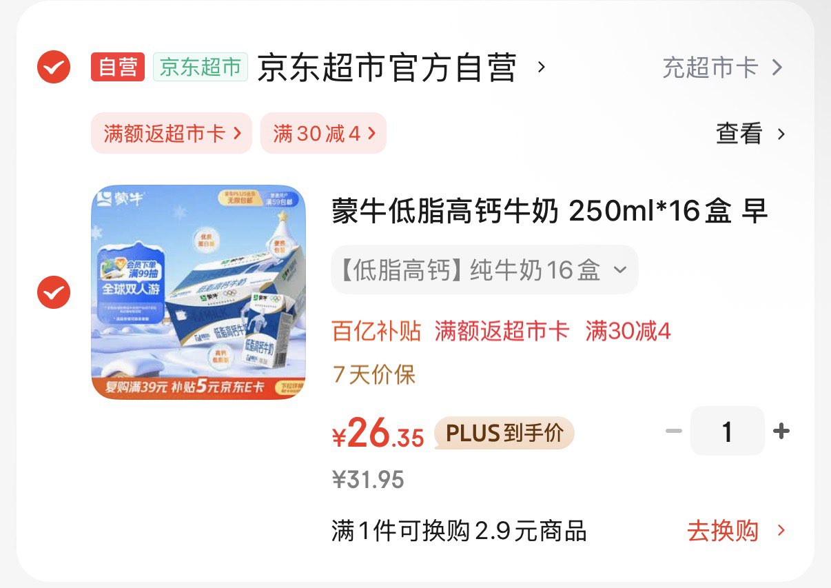 深圳南京地区26.3亓 蒙牛低脂高钙牛奶 250ml*16盒 好单发报员 2025年12月22日 20:45 0 举报 深圳南京地区26.3亓蒙牛低脂高钙牛奶 250ml*16盒 https://u.jd.com/AgIwBM5 复制文案