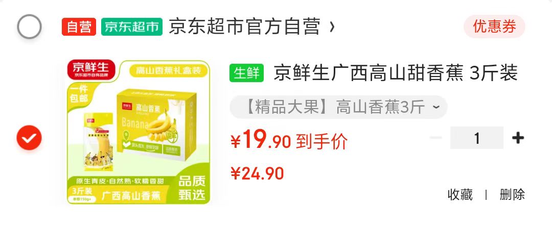 京鲜生 高山甜香蕉3斤装 19.9 6.6/斤