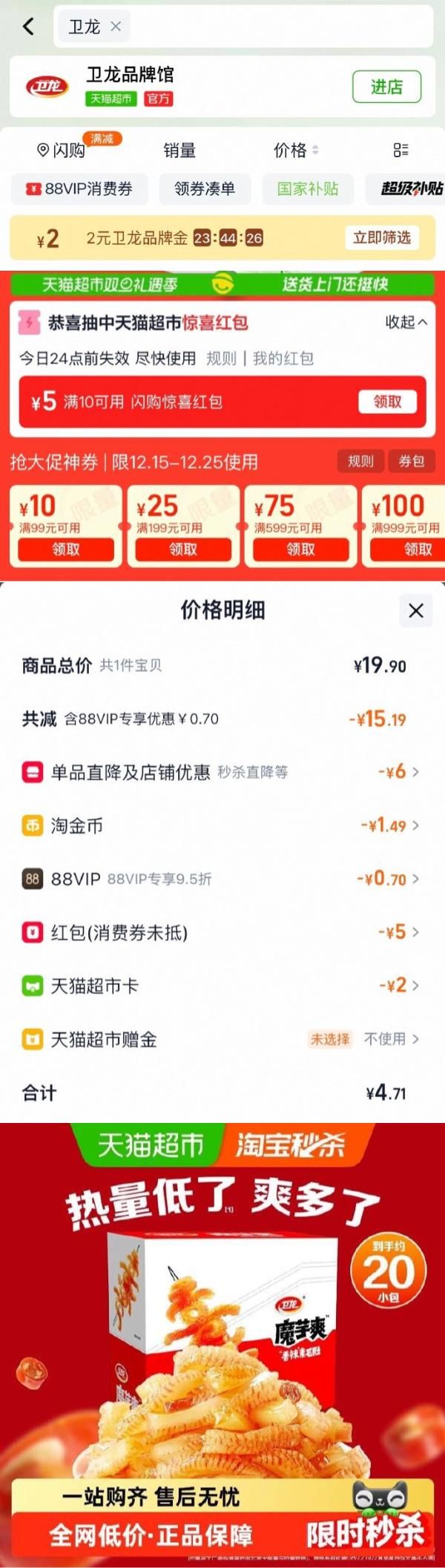 详情页进入淘金币页面加购,拍1件vip【4.71】