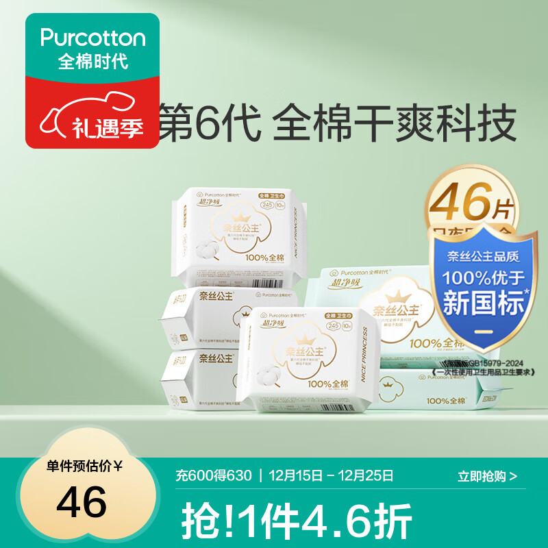 全棉时代 超净吸纯棉卫生巾245mm 40片 420mm 6片