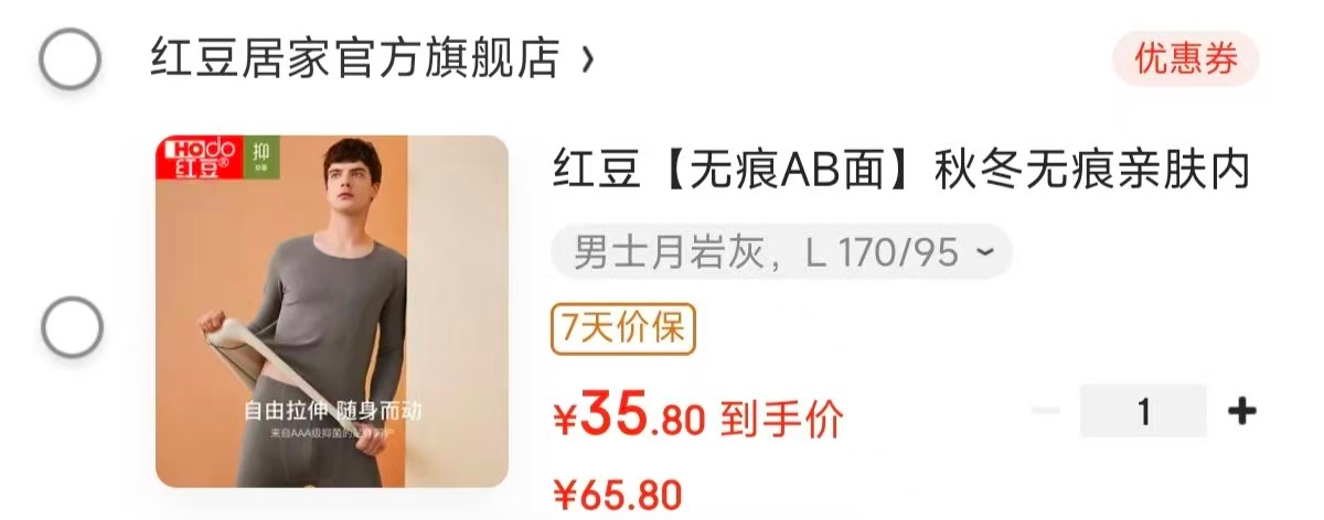 红豆 无痕AB面秋冬无痕保暖内衣套装,任选1款【35.8】
