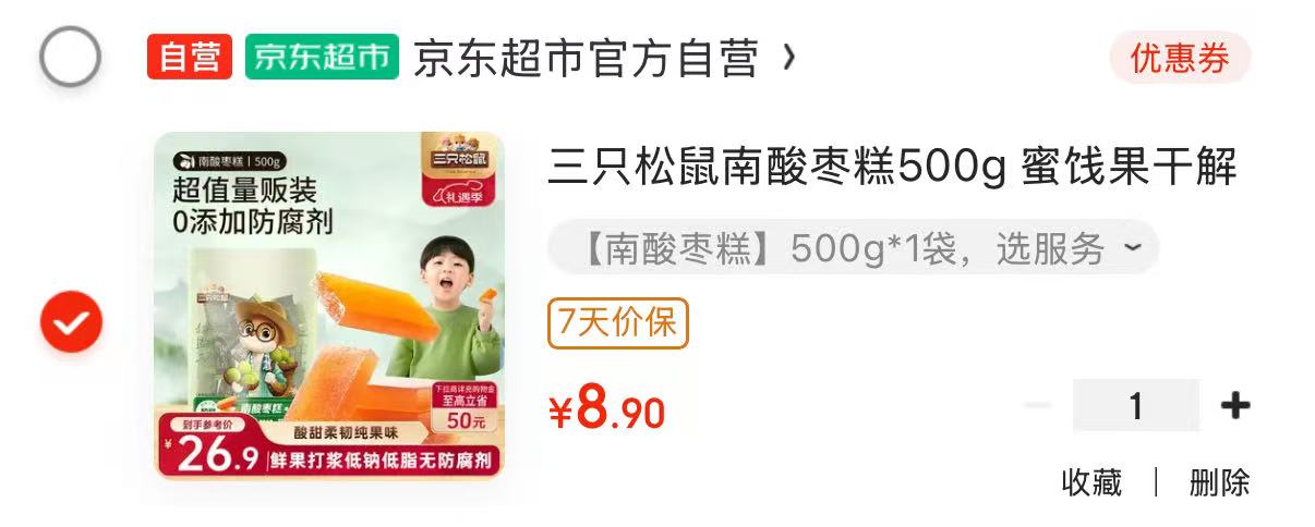新疆地区 三只松鼠南酸枣糕500g 【8.9】