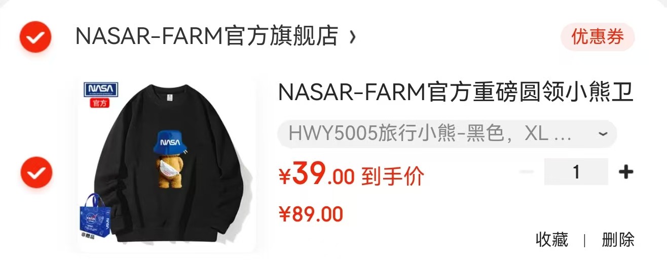 NASAR-FARM 重磅圆领小熊卫衣【39】