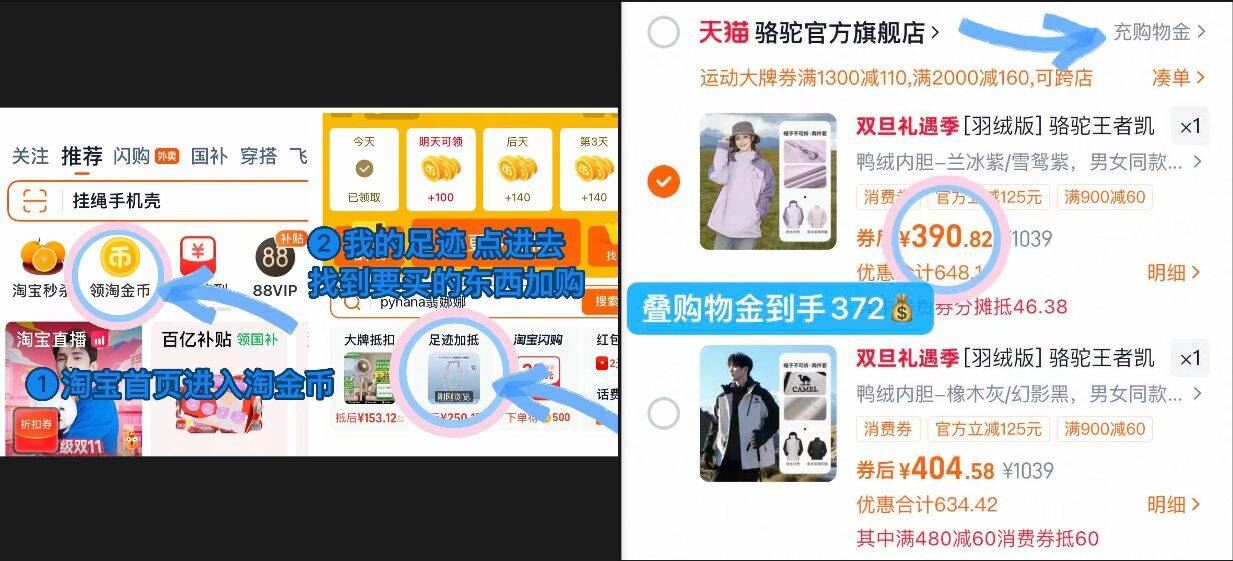 372 元 骆驼羽绒版王者凯甲Evo三合一冲锋衣