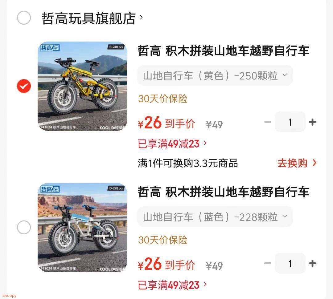 26元 两种颜色可选! 哲高 积木拼装山地自行车玩具 有趣好玩 大人也适合~ 好单发报员 2025年12月25日 13:23 0 举报 26元 两种颜色可选!哲高 积木拼装山地自行车玩具https://u.jd.com/A1GVnpc 有趣好玩 大人也适合~ 复制文案