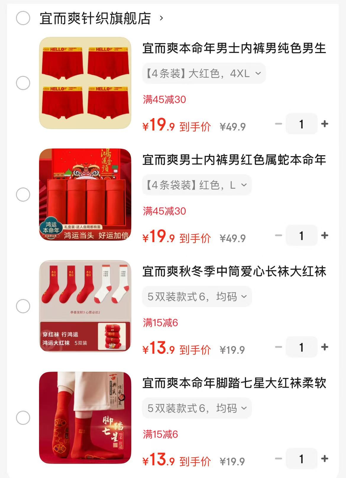 宜而爽 本命年男士内裤 4条装【19.9】https://u.jd.com/AOGFeo8
