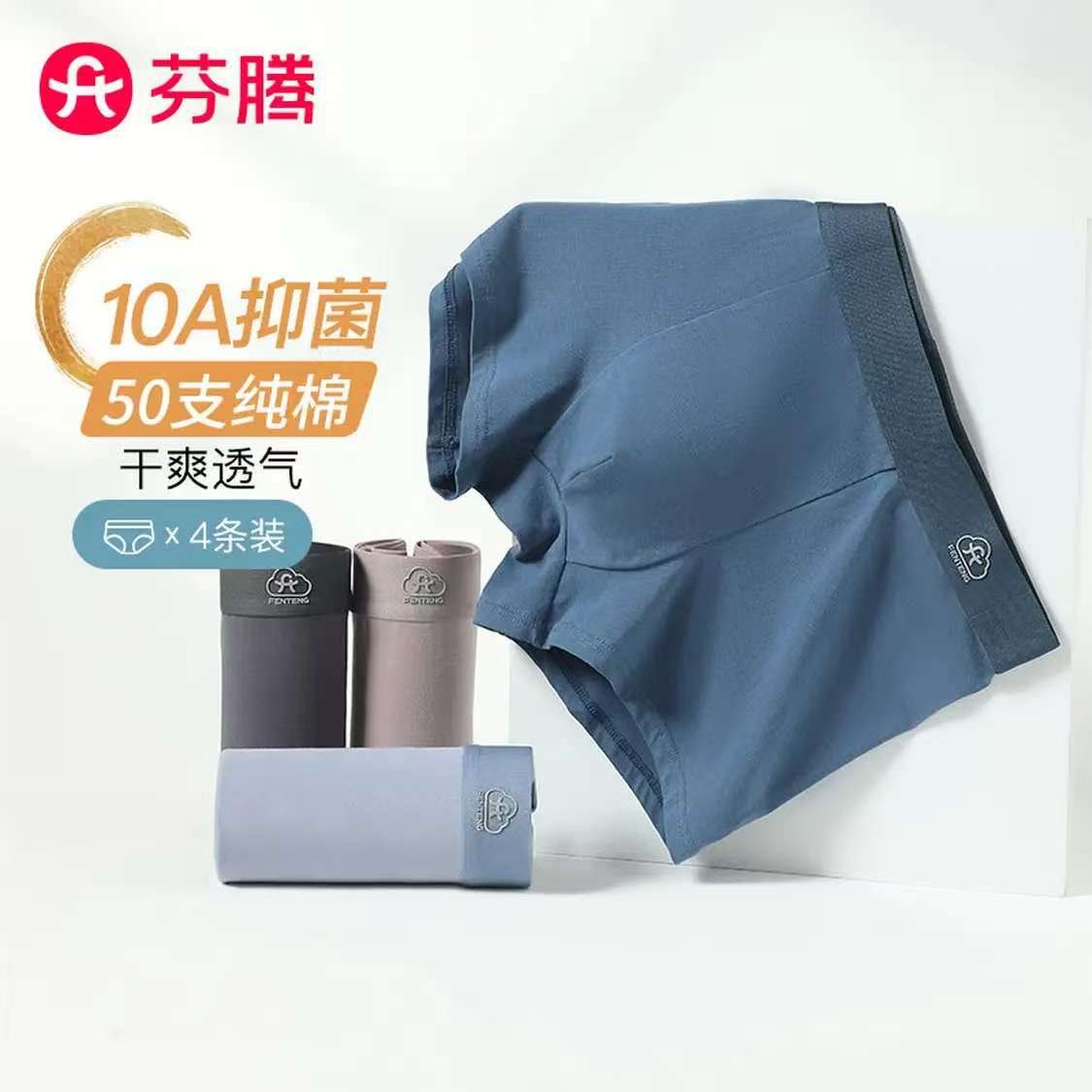 芬腾 男10A抑菌平角内裤4条