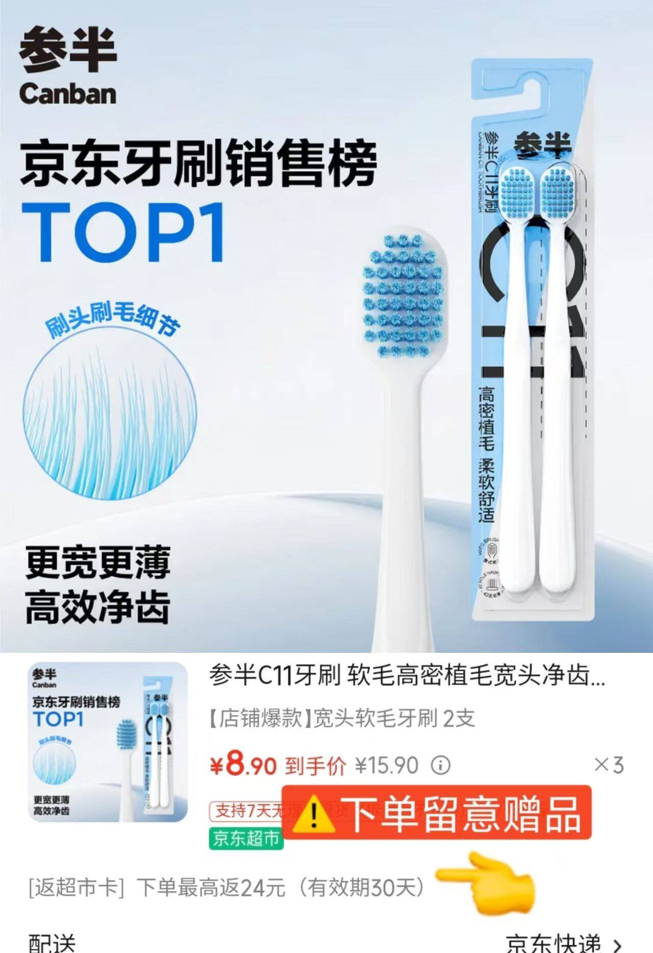 冲参半牙刷shen車 自营 参半 宽头软毛牙刷2支 买3件26.7亓包邮,限时包邮好单发报员2025年12月29日 07:000举报 ——冲参半牙刷shen車——【自营】参半 宽头软毛牙刷2支https://u.jd.com/AOYr33u买3件26.7亓包邮,限时包邮*反24亓超.市卡 才折0.45亓/支复制文案