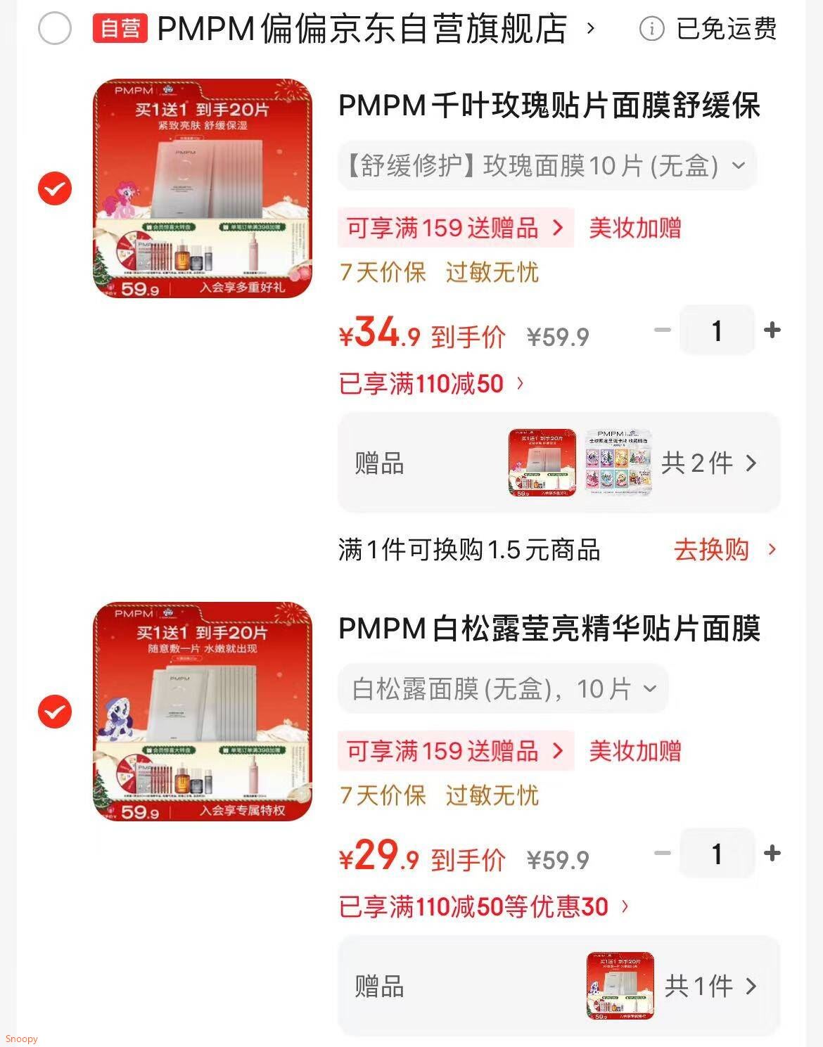 PMPM 千叶玫瑰/白松露 贴片面膜 23ml*10片,任选2件【64.8】加赠品共40片