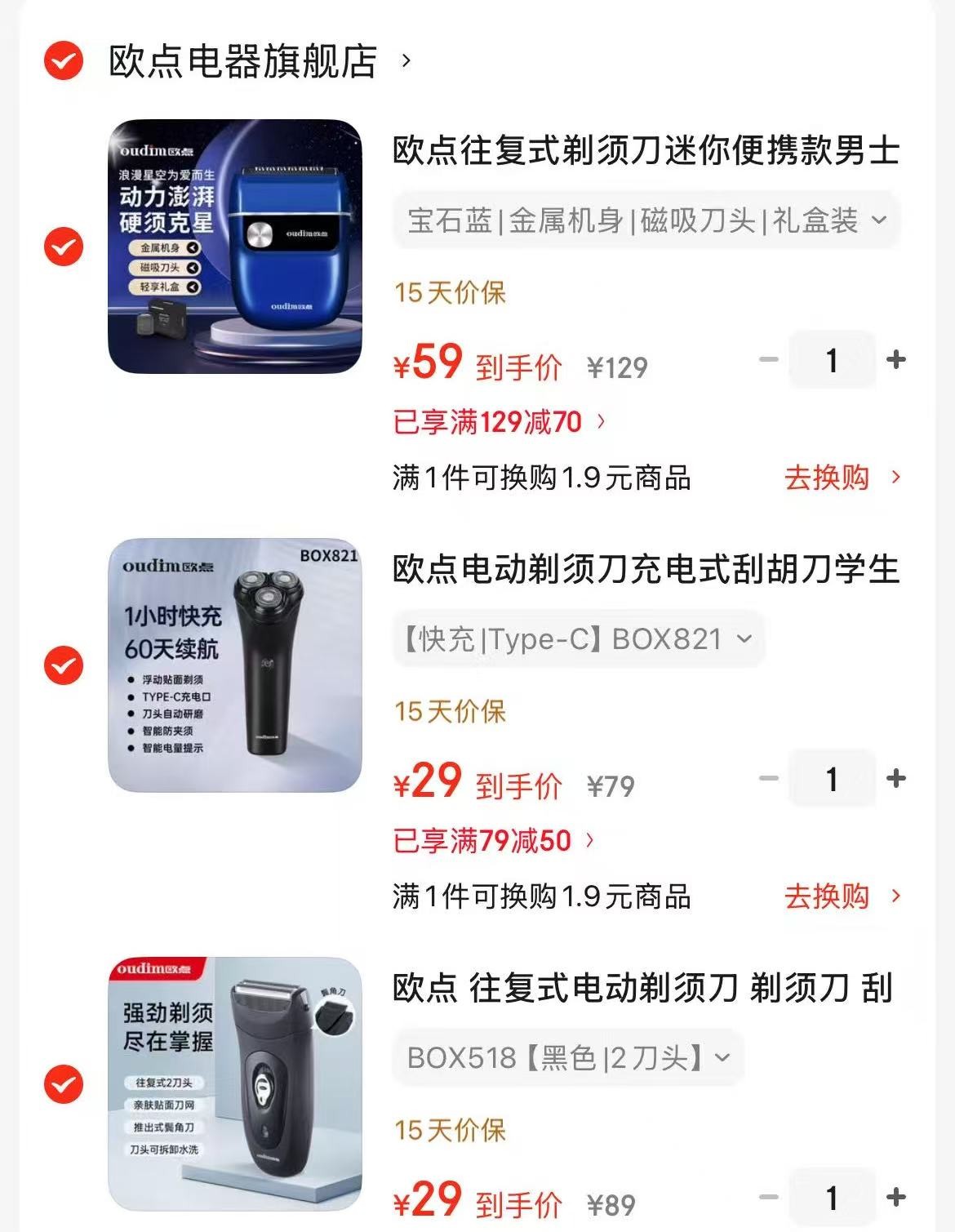 欧点 往复式电动剃须刀 黑色|2刀头【29】晒图返 3元
