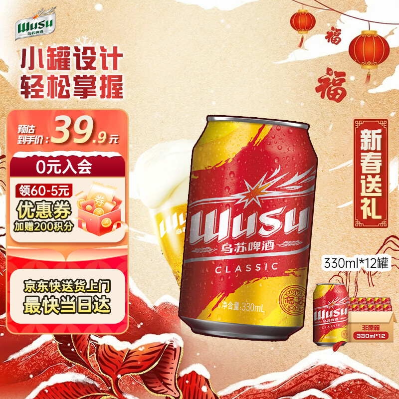 【自营】乌苏 经典烈性啤酒