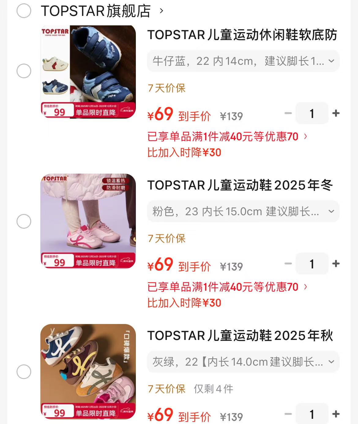 TOPSTAR儿童运动休闲鞋,任选1双【69】