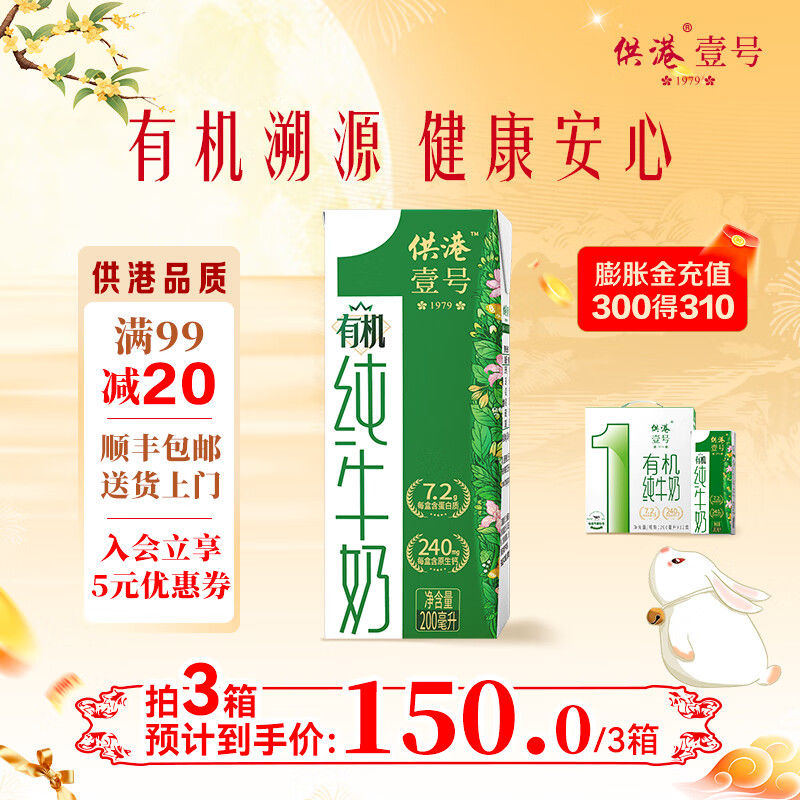 供港壹号 有机纯牛奶200ml*12盒*3箱