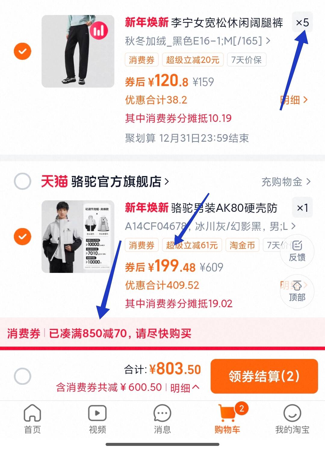 ②凑单裤子加购 复制本消息打开桃宝查看 根据消费券大小提高凑单件数 好单发报员 2025年12月29日 20:20 0 举报 ②凑单裤子加购https://m.tb.cn/h.7gRGhjw复制本消息打开桃宝查看根据消费券大小提高凑单件数直到显示凑满消费券骆驼棉服190-210元到手 复制文案
