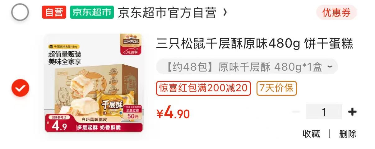 南昌 乌鲁木齐 温州地区 三只松鼠千层酥原味480g 【4.9】