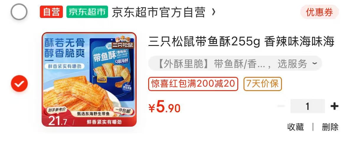 太原地区 三只松鼠麻辣味吮指小龙虾尾100g【5.9】