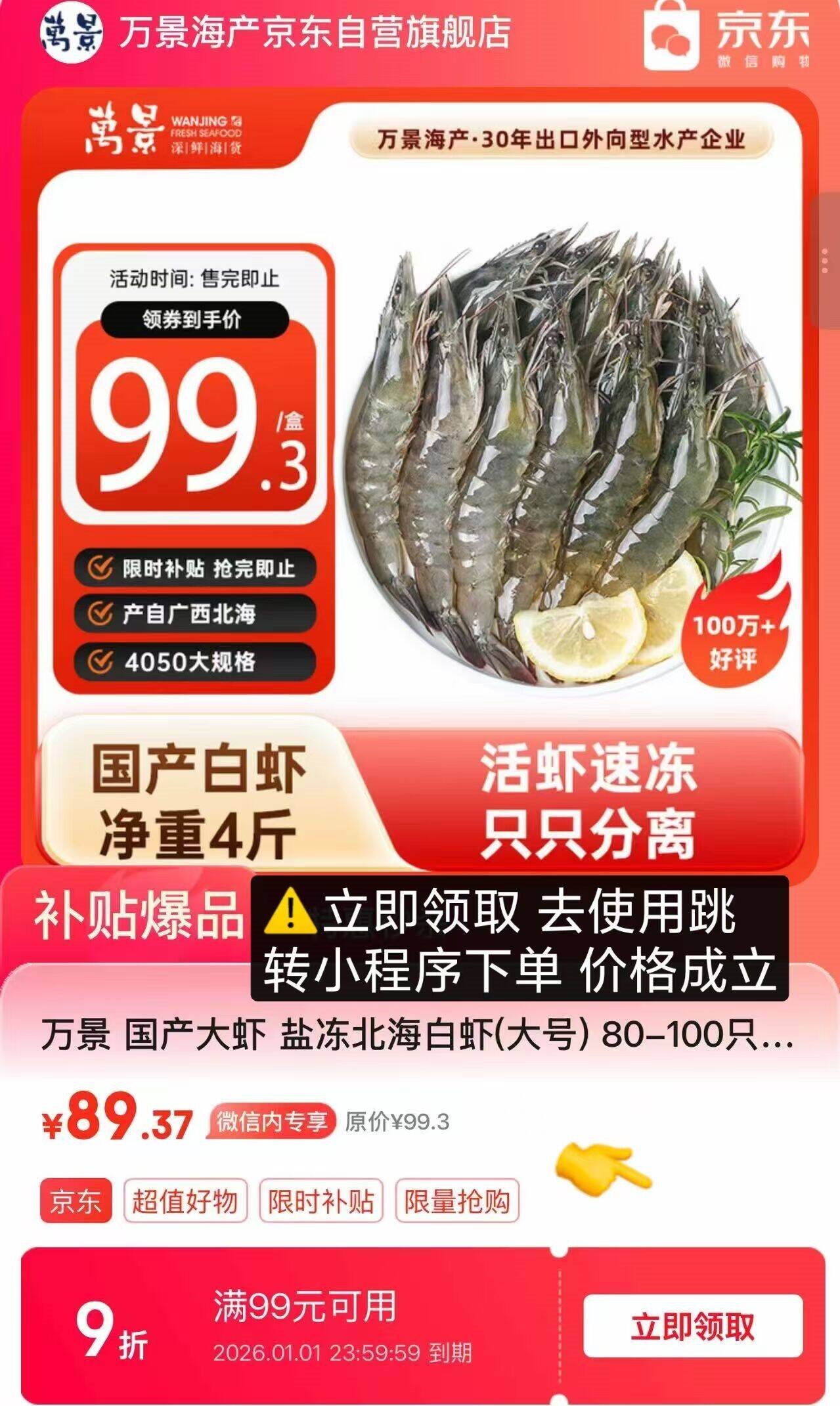 万景大虾发車 万景 北海白虾无冰净重4斤 89.3亓自营包邮,折22.3/斤 好单发报员 2025年12月30日 07:42 0 举报 ——万景大虾发車——万景 北海白虾无冰净重4斤https://u.jd.com/AG0Vlv389.3亓自营包邮,折22.3/斤*活虾速冻 白灼香煎都好吃~ 复制文案