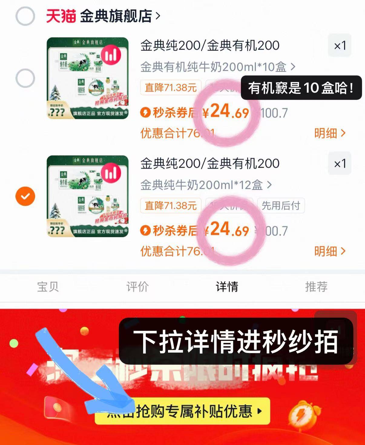 24元金典纯牛奶200ml*12盒 24元金典有机纯奶200ml*10盒 块!看图下拉详情叠秒纱好单发报员2025年12月30日 10:080举报 24元金典纯牛奶200ml*12盒24元金典有机纯奶200ml*10盒块!看图下拉详情叠秒纱https://m.tb.cn/h.7TVEBeF复制文案