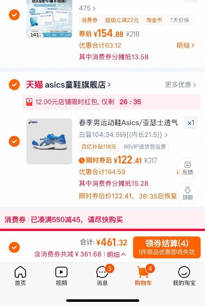亚瑟士 CONTANA PS 男女童减震运动跑鞋 白蓝选项,弹12元限时红包,从淘金币足迹下单,自行再凑消费红包更低约122元