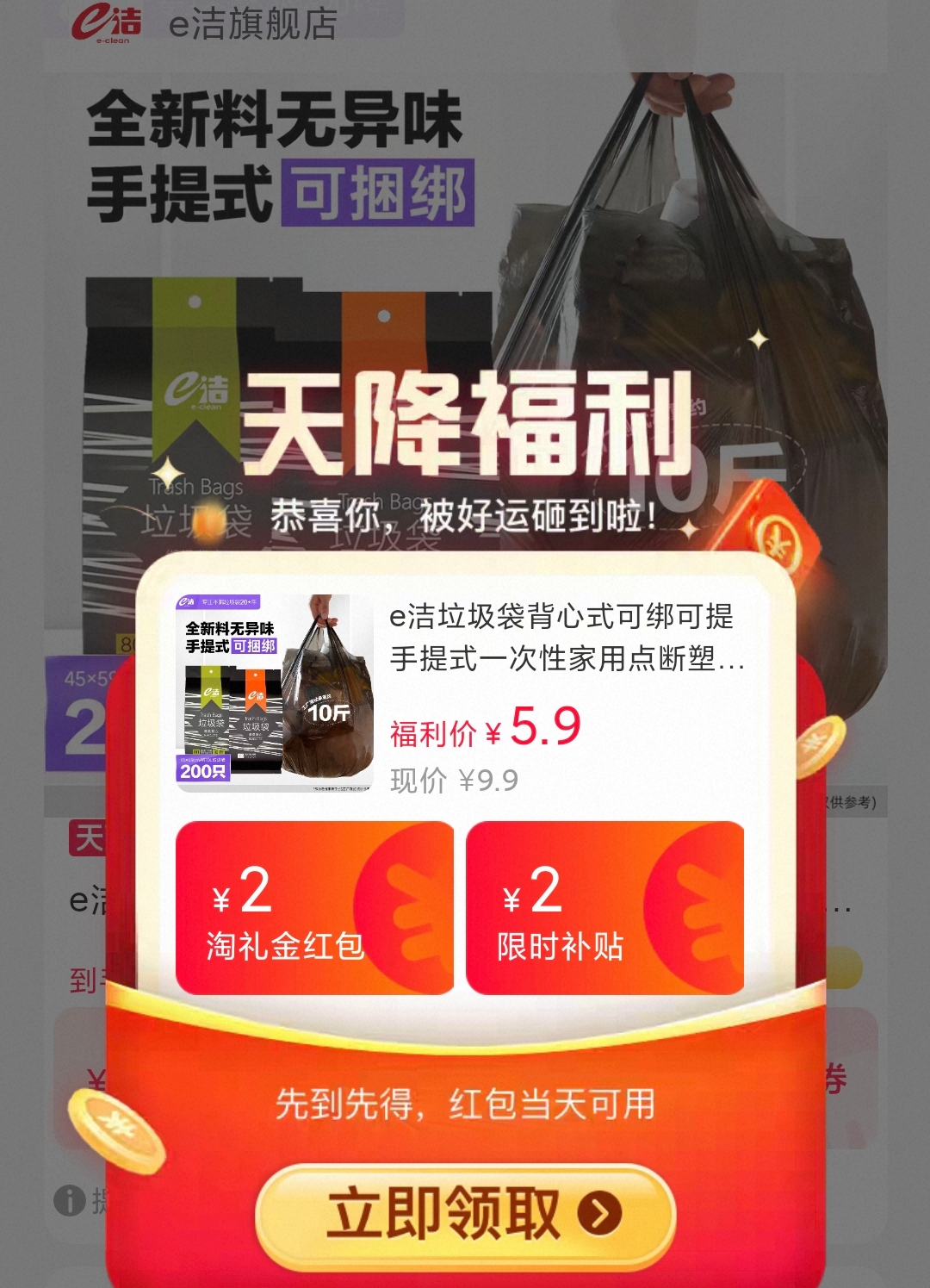 5.9亓速度 e洁旗舰店 自动收口加厚垃圾袋100只 大牌e洁,加厚款垃圾袋! 好单发报员 2025年12月30日 10:31 0 举报 5.9亓速度【e洁旗舰店】自动收口加厚垃圾袋100只大牌e洁,加厚款垃圾袋!https://m.tb.cn/h.76QT3eo复制本消息 打开陶宝查看 复制文案