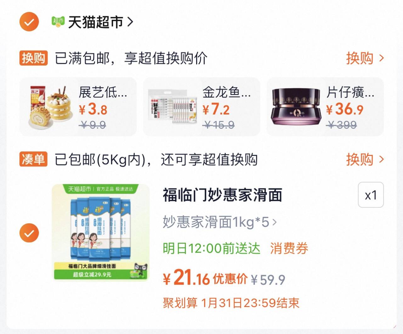 福临门妙惠家挂面1kg*5袋 vip价21.1元 折2.1元/斤 点右上角3个点-淘金币-我的足迹-重新加购好单发报员2025年12月31日 08:470举报 福临门妙惠家挂面1kg*5袋vip价21.1元 折2.1元/斤https://m.tb.cn/h.76VLhKa点右上角3个点-淘金币-我的足迹-重新加购复制文案