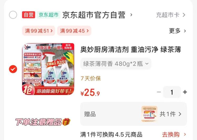 奥妙厨房清洁剂480g*2 25元.9 贈1号店荟员 可兑30枚鸡蛋*2或牛奶*2好单发报员2026年01月01日 00:550举报 奥妙厨房清洁剂480g*225元.9 贈1号店荟员可兑30枚鸡蛋*2或牛奶*2https://u.jd.com/ADEPe7p复制文案