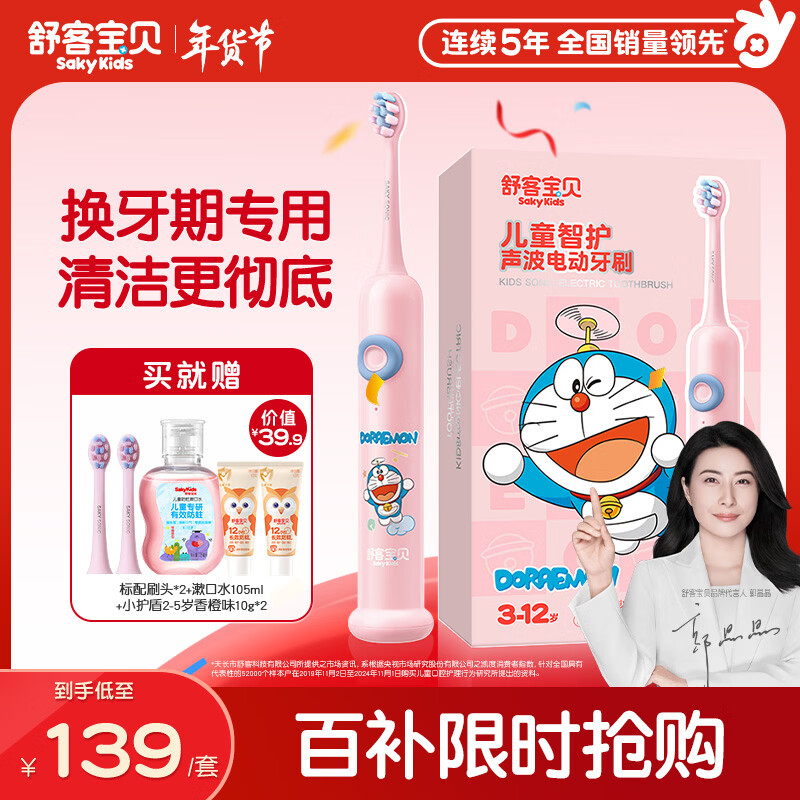 【JD自营】舒客宝贝 哆啦A梦联名F2儿童电动牙刷