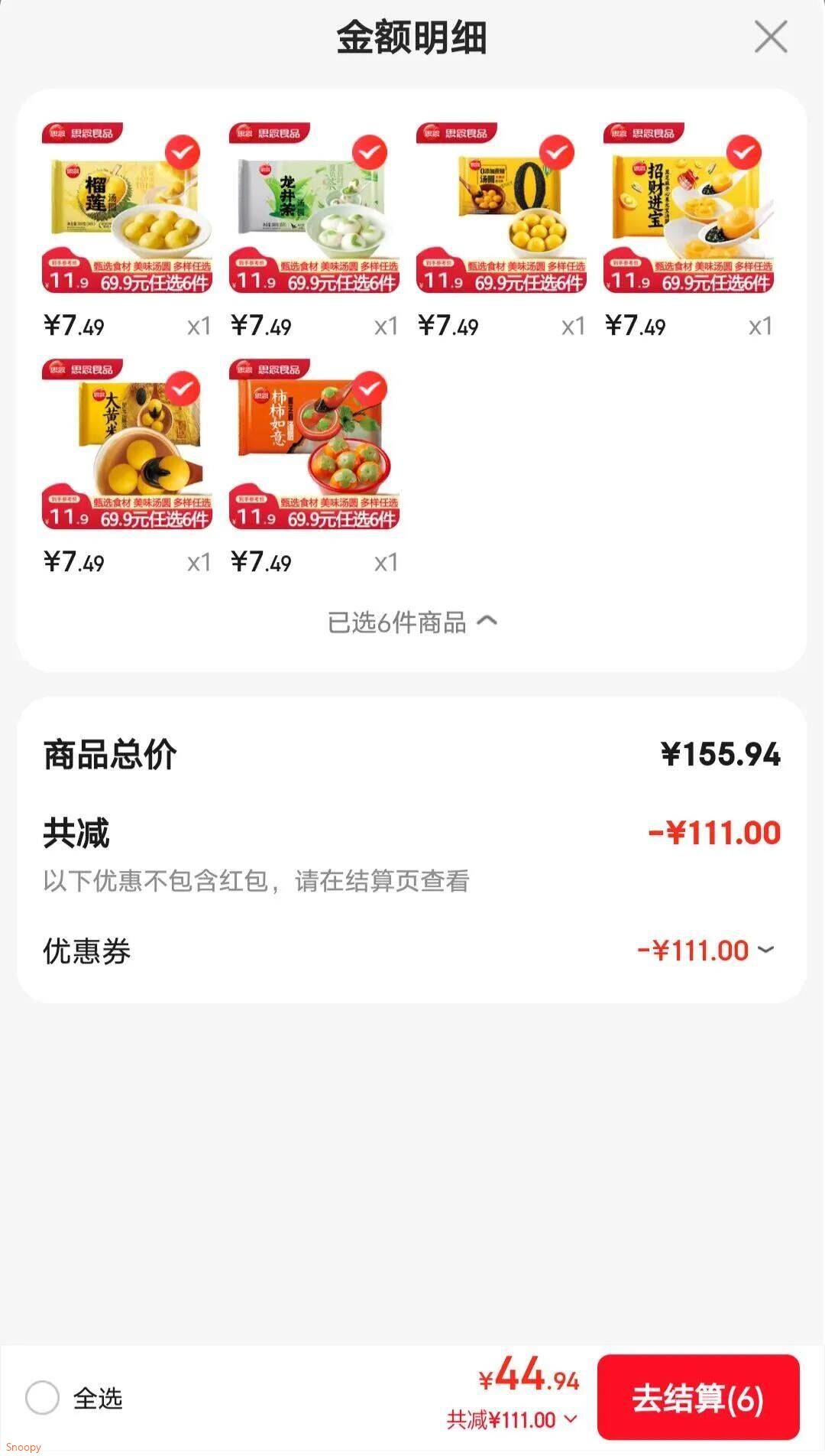 7.49元/件!元宵任选! 思念 大包装速冻汤圆组合 任选6件44.94元 9款可选!好单发报员2026年01月01日 16:580举报 7.49元/件!元宵任选!思念 大包装速冻汤圆组合https://u.jd.com/A1lOd1C 任选6件44.94元 9款可选!复制文案
