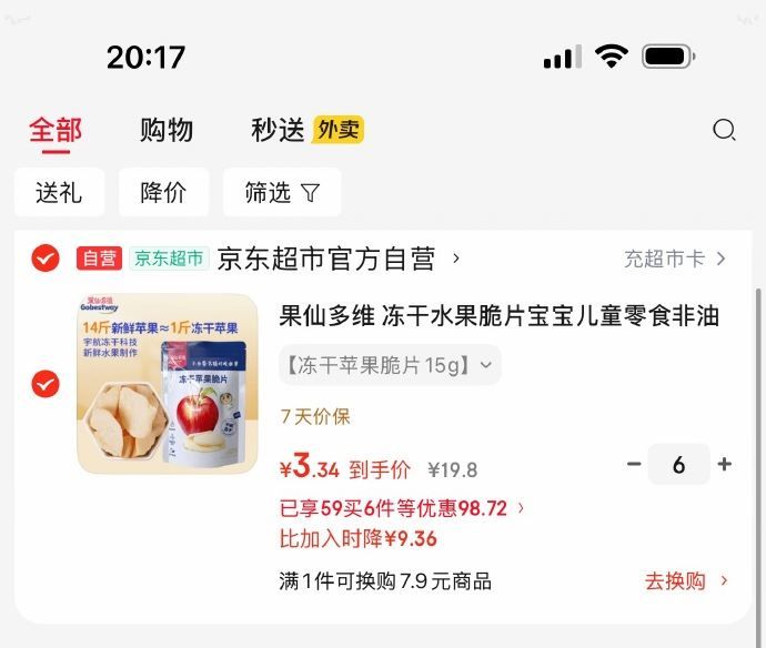果仙多维 冻干水果脆片苹果味15g,每件3.34