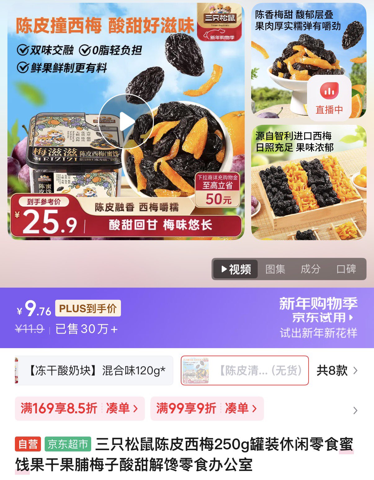 三只松鼠陈皮西梅250g,部分地区