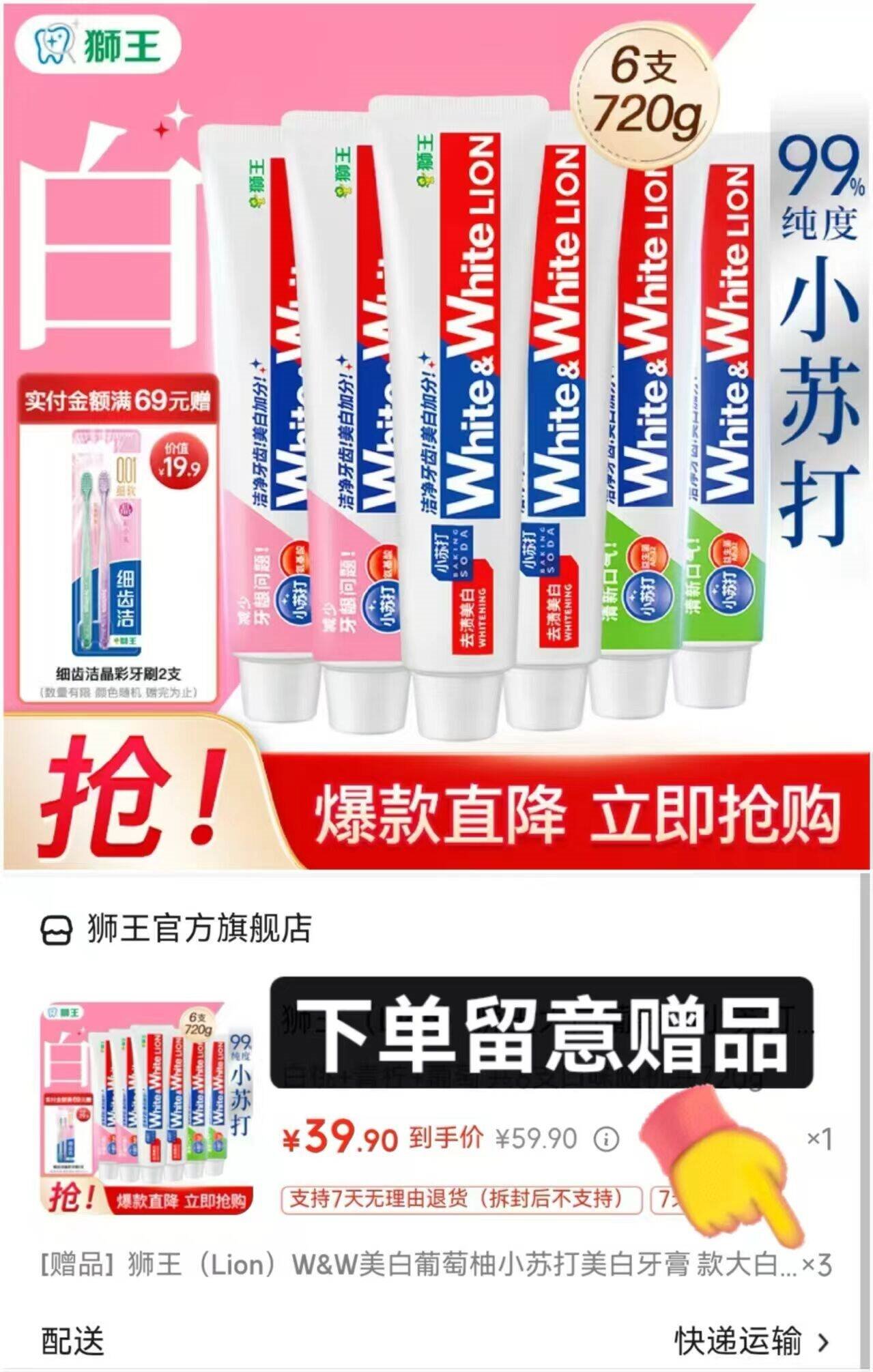 39.9亓,再赠牙膏40g*3支