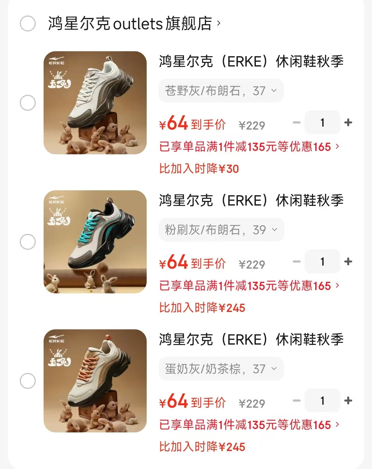 鸿星尔克 (ERKE)休闲鞋百搭玉兔女鞋 ,任选1款拍下【64】