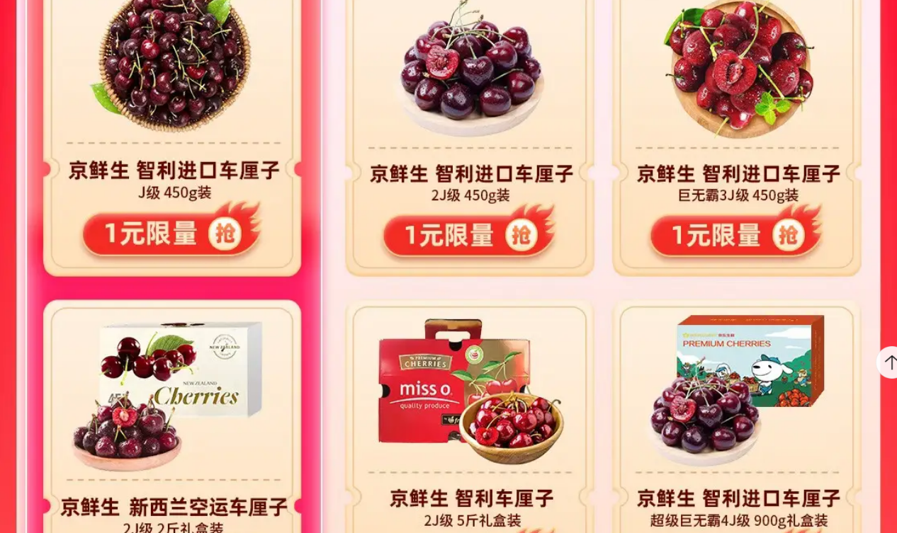 车厘子1元和9.9 https://u.jd.com/EaMWDtH