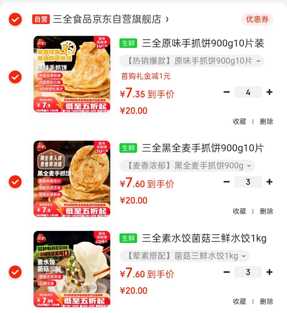 JD自营水饺面点好价