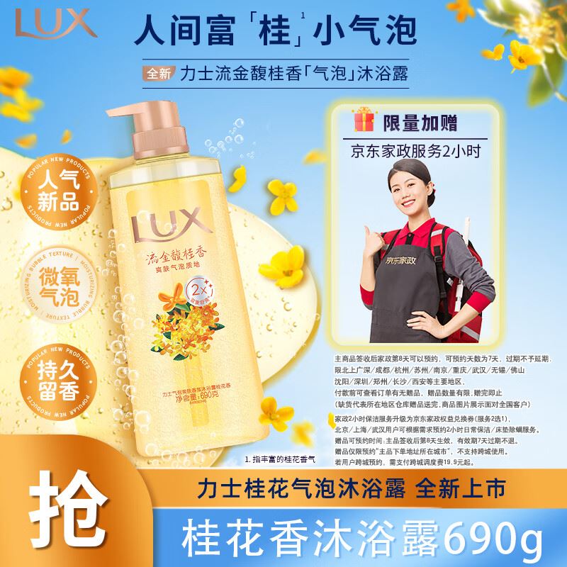 自营力士 气泡爽肤二合一持久留香沐浴露男女桂花香690g 到手59元 赠京东家政2小时