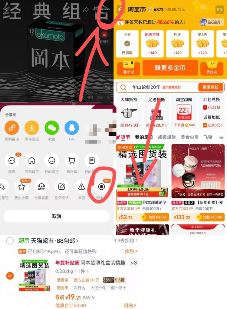 商品右上角3个点,选淘金币