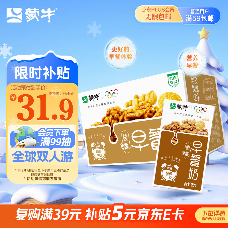 【自营】蒙牛 早餐奶核桃味 250ml 16盒