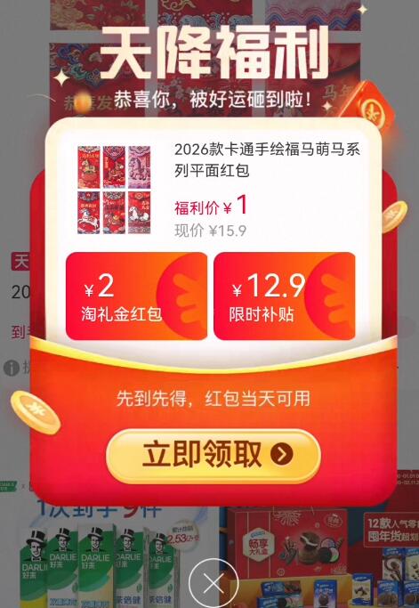1亓!限时天降礼金