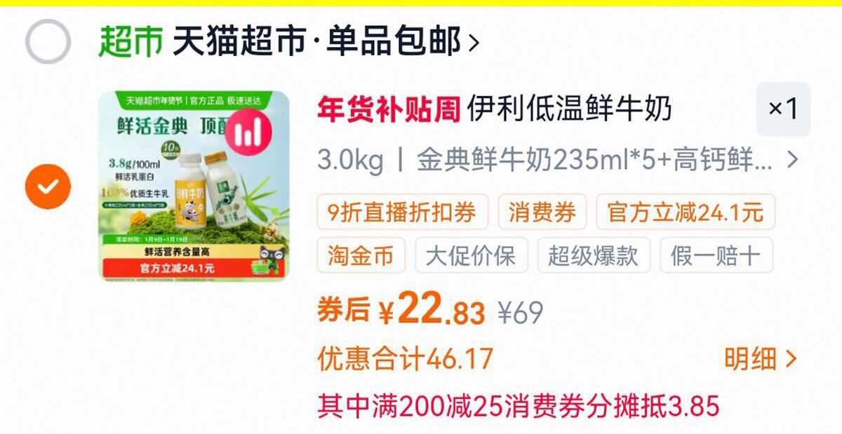 伊利金典鲜牛奶235ml*5 高钙鲜牛奶235ml*5