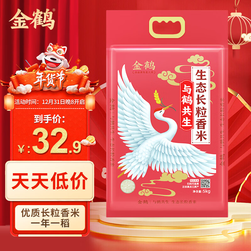 【JD自营】金鹤 生态长粒香米10斤